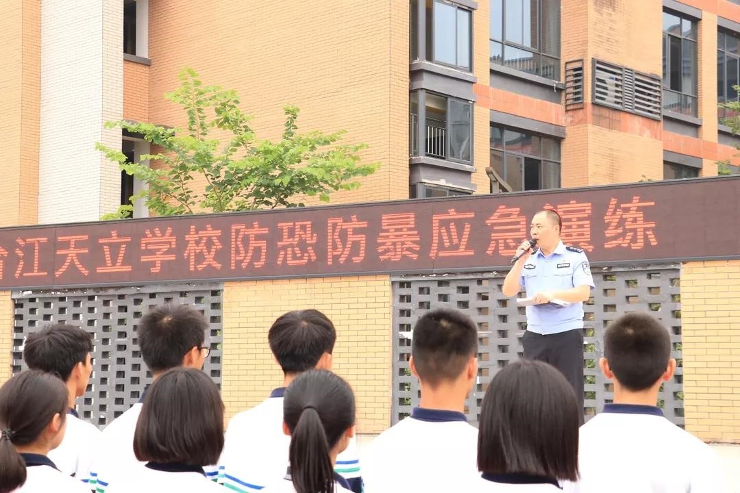 在新中國(guó)成立70周年大慶前夕,合江天立學(xué)校全校師生與合江鎮(zhèn)派出所警官在學(xué)校操場(chǎng)聯(lián)合開(kāi)展了防恐防暴應(yīng)急處置演練。通過(guò)本次演練,學(xué)校的應(yīng)急事件處置制度、流程得到充分的檢閱和完善,為學(xué)校處理類(lèi)似事件奠定了堅(jiān)實(shí)基礎(chǔ),筑牢了校園安全防線(xiàn)。