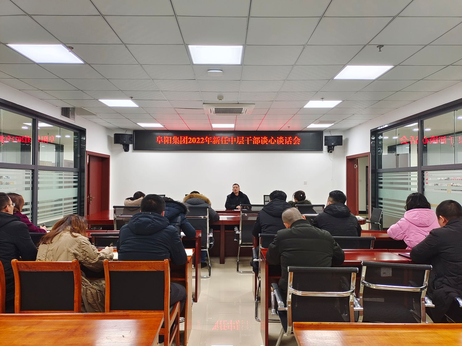 2022 年 2 月 9 日, 阜陽集團公司黨委副書記、 紀委書記 聶仕華對新任中層干部開展任前集中...