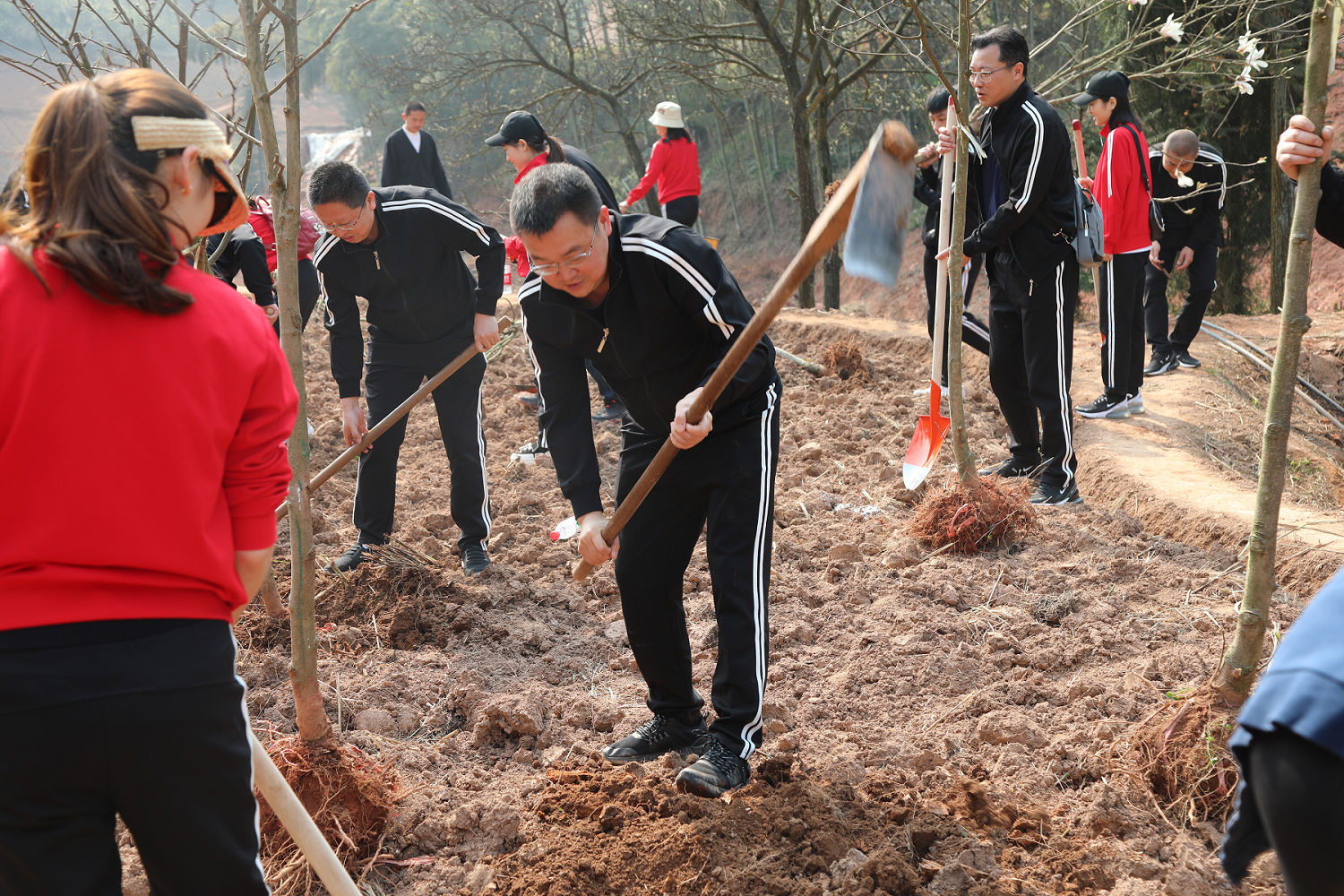 隨后,大家積極主動(dòng)的投入到植樹(shù)活動(dòng)中,通過(guò)挖坑鏟土、扶樹(shù)正苗、踩土定植、澆水灌溉,有條不紊地開(kāi)展每道種植工序。