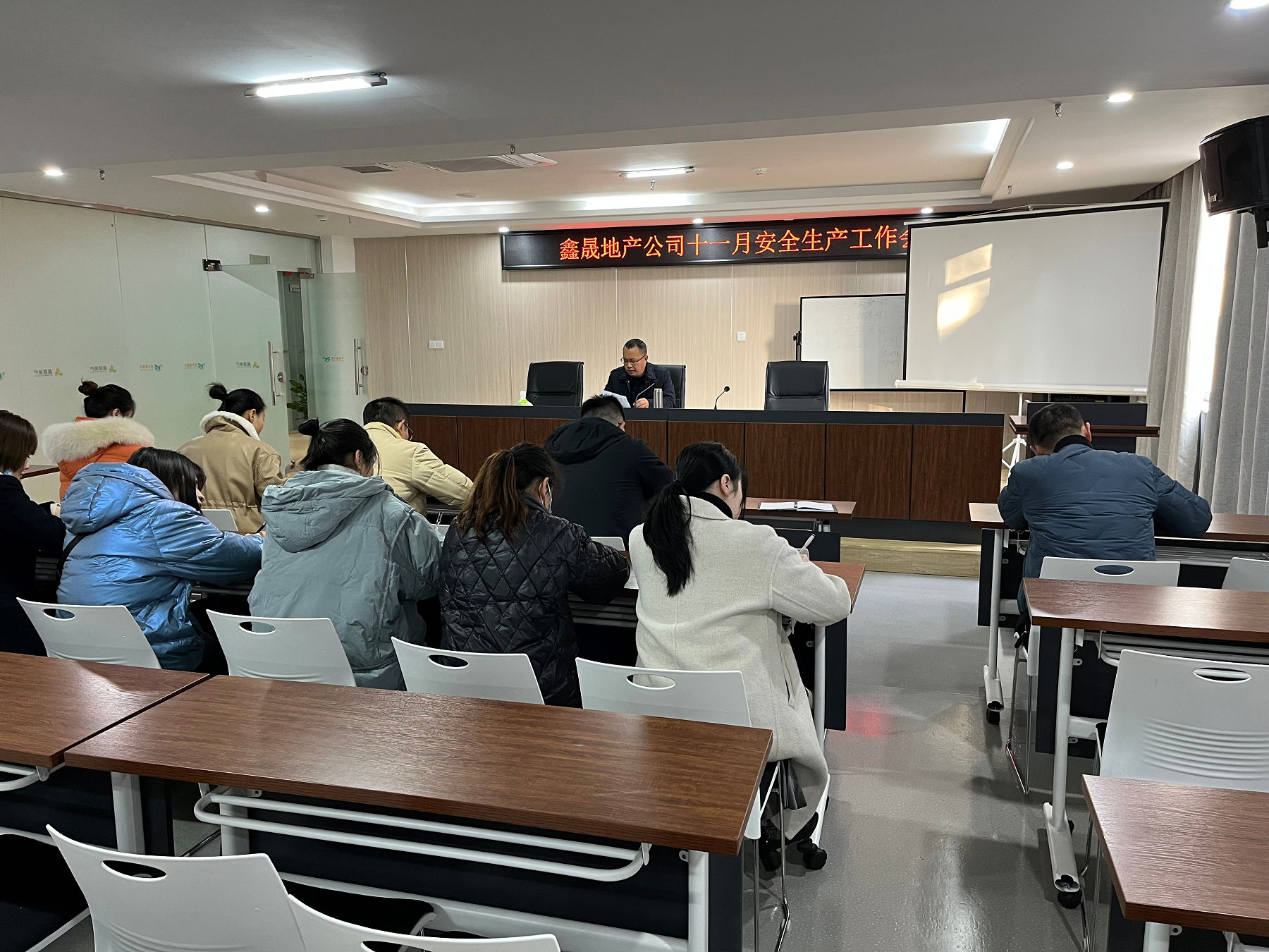 2021 年 11 月 30 日, 瀘州鑫晟房地產(chǎn)開發(fā)有限公司組織召開 十一月安全生產(chǎn)工作會(huì),會(huì)議由董事長(zhǎng)任東財(cái)主持,公司全體員 工參加。
