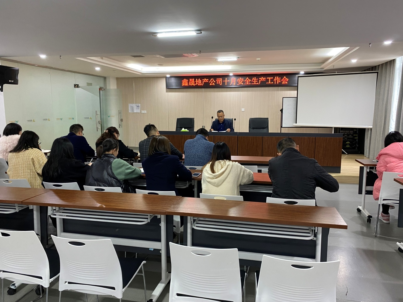 2021年11月2日,瀘州鑫晟房地產(chǎn)開發(fā)有限公司組織召開十月安全生產(chǎn)工作會(huì),會(huì)議由董事長任東財(cái)主持,公司全體員工參加。