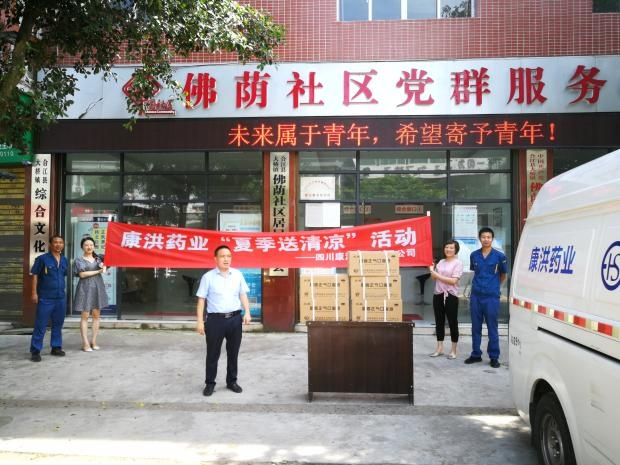夏日炎炎,熱浪滾滾,合江縣迎來了連日高溫,為切實(shí)做好防暑降溫工作,近日四川康洪藥業(yè)有限公司組織開展了“夏季送清涼”活動(dòng)。公司工作人員頂著似火的驕陽,先后前往合江縣部分鄉(xiāng)鎮(zhèn)社區(qū)、部分衛(wèi)生院等,為奮戰(zhàn)在一線的工作者送上了藿香正氣口服液等防暑藥品,讓他們?cè)谑⑾牡目崾钪懈惺艿揭环萸鍥?,一份關(guān)懷,一份愛心。