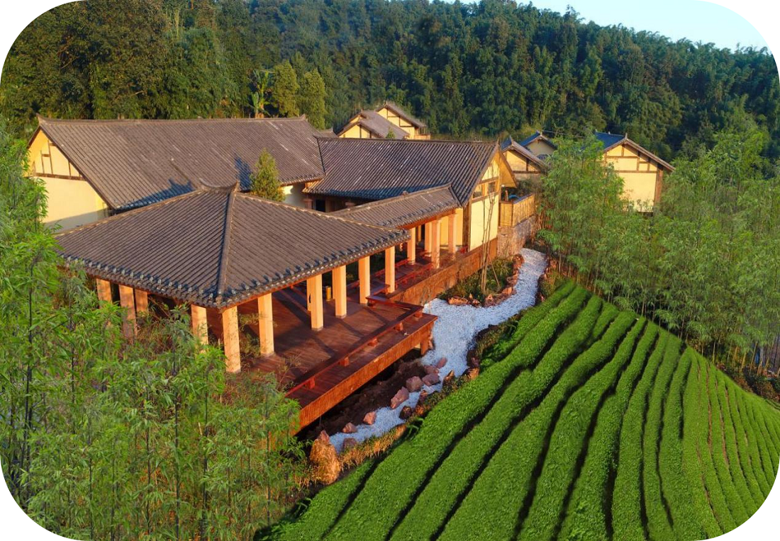 半山云舍建筑面積1246平方米,由六幢具有濃郁川南特色民居風格的吊腳小樓與竹林、茶園、水池、庭院等外部景觀組成。設有辦公區(qū)、景區(qū)規(guī)劃展示大廳、接待服務區(qū)、住宿與停車等區(qū)塊;配置有景區(qū)管理、景區(qū)招商、地產銷售、來賓接待等綜合性管理功能,其中設有1個能容納50人以上的多功能會議室,設有1個能至少容納10人以上的小會議室,配有3個以上男女廁位的公共衛(wèi)生間;建筑設計上以當地的丹霞紅石、穿斗木構等傳統(tǒng)文化因素為精神內核,在空間布局上融入落地門窗、觀景平臺等現(xiàn)代審美元素,匠心打造,風格鮮明。