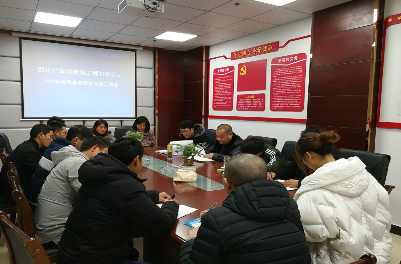 1月11日下午,四川廣源達(dá)建設(shè)工程有限公司組織召開了2019年第一季度安全生產(chǎn)工作暨黨風(fēng)廉政建設(shè)工作會議。會上,董事長譙棣升領(lǐng)學(xué)了安全生產(chǎn)工作相關(guān)文件,全面總結(jié)了2018年安全生產(chǎn)工作目標(biāo)完成情況,并對2019年公司的安全生產(chǎn)工作提出了要求。同時,董事長譙棣升還著重強(qiáng)調(diào)了廉潔從業(yè)相關(guān)事宜,要求抓黨風(fēng)廉政建設(shè)要像抓企業(yè)安全生產(chǎn)一樣持之以恒,與企業(yè)經(jīng)營發(fā)展同頻共振;把廉潔從業(yè)作為企業(yè)發(fā)展的出發(fā)點,堅持以廉潔凝聚人心,以廉潔樹立形象。