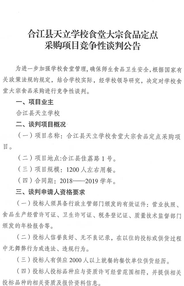 競(jìng)爭(zhēng)性談判公告:合江縣天立學(xué)校食堂大宗食品定點(diǎn)采購(gòu)項(xiàng)目競(jìng)爭(zhēng)性談判公告