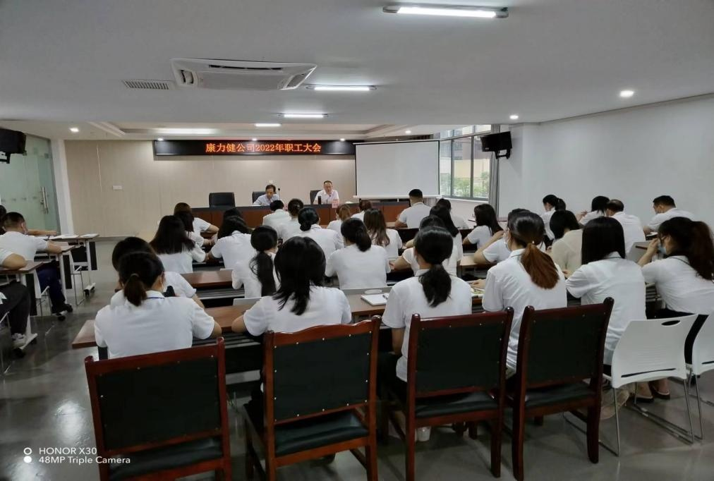 2022 年 6 月 27 日上午,瀘州康力健醫(yī)療投資有限公司 在 公 司 大 會(huì) 議 室 舉 行 2022 年 職 工 大 會(huì) 。 公 司 董 事 長(zhǎng) 胡 天 華 、 總經(jīng)理鄭世來(lái)出席了大會(huì), 并在大會(huì)上發(fā)表重要講話。 本次 大會(huì)分為上半年工作總結(jié)、 下半年工作計(jì)劃及安全生產(chǎn)會(huì)議 三個(gè)部分, 旨在總結(jié)公司上半年的發(fā)展情況, 完善下半年的 發(fā)展計(jì)劃及 “ 對(duì)標(biāo)找差、提能增效 ” 活動(dòng)開(kāi)展情況,鄭世來(lái)總 經(jīng)理提出 : 一是要理清業(yè)務(wù)工作思路,對(duì)目標(biāo)任務(wù)高標(biāo)準(zhǔn)嚴(yán) 要求的貫徹執(zhí)行;二是要強(qiáng)化落實(shí) “ 兩個(gè)責(zé)任 ” ,抓好黨的建 設(shè)和企業(yè)管理。 將組織相關(guān)人員不定期對(duì)公司各崗位履職情 況進(jìn)行檢查監(jiān)督, 發(fā)現(xiàn)問(wèn)題, 立即指出督促整改到位, 建立 健全各項(xiàng)規(guī)章制度, 以制度管人, 推動(dòng)公司各職能部門履職 盡責(zé), 提升公司盈利能力和盈利水平, 并對(duì)廉潔從業(yè)及安全 生產(chǎn)管理制度進(jìn)行了的宣講。